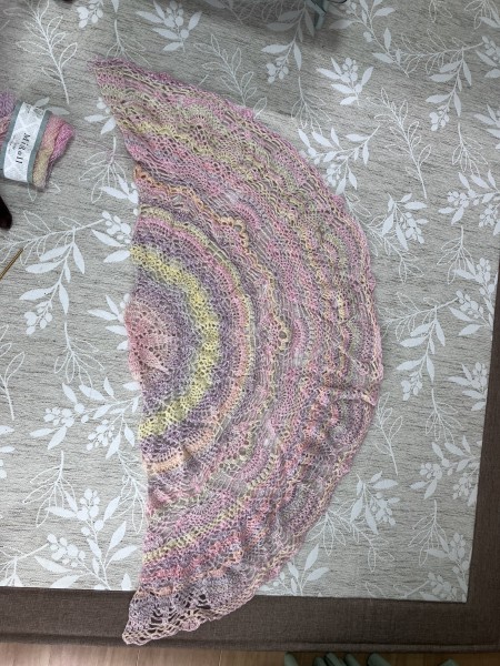 2玉もうすぐ編み上がりますが大きさが足りなさそうなので、もうひと玉買いに行かないと
