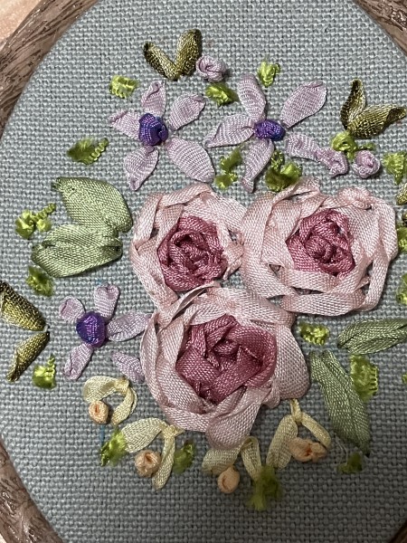 リボンにしわが寄らないようにうまく刺すのは難しいですね