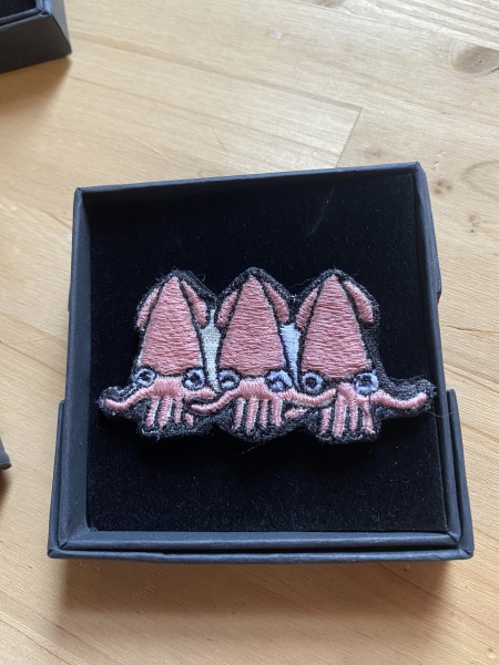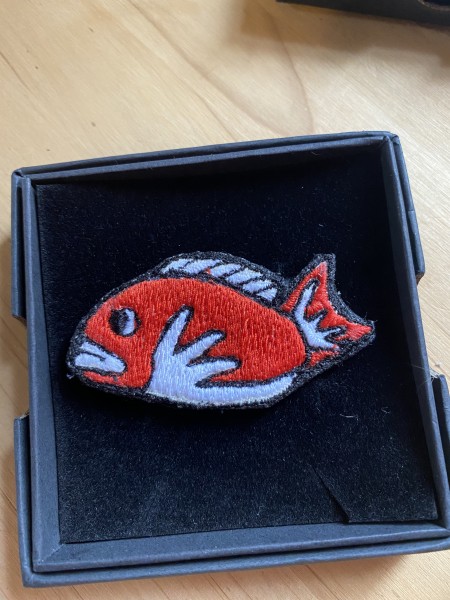 富山名物シリーズ 刺繍ブローチ作りました。ます寿司 ホタルイカ 鯛かまぼこ
