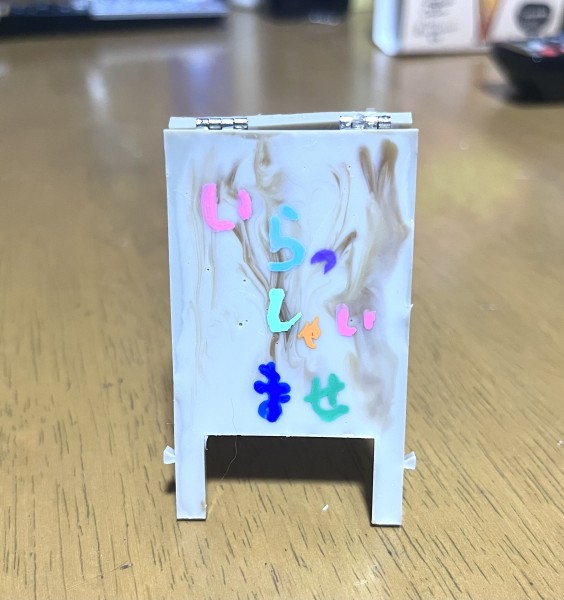 木の板に見えるように、ちょっと模様を入れたこと。