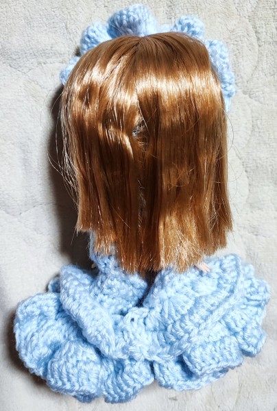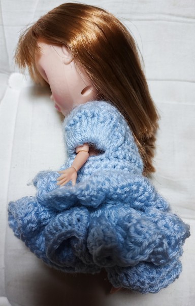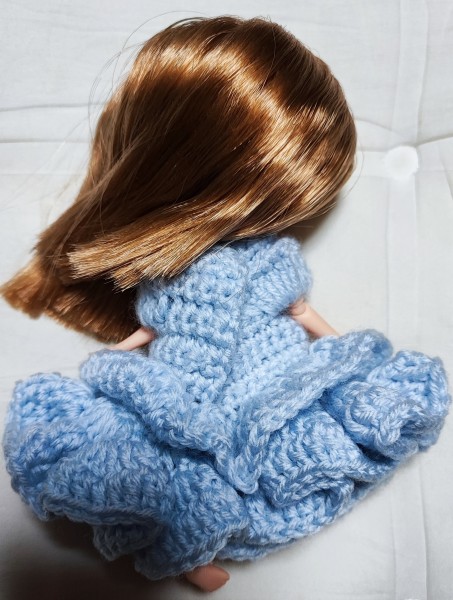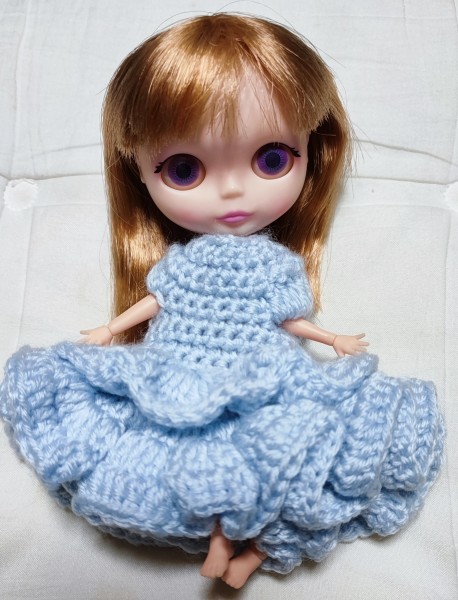 身長約15cmのポップマートブライスちゃんにワンピースを編みました。