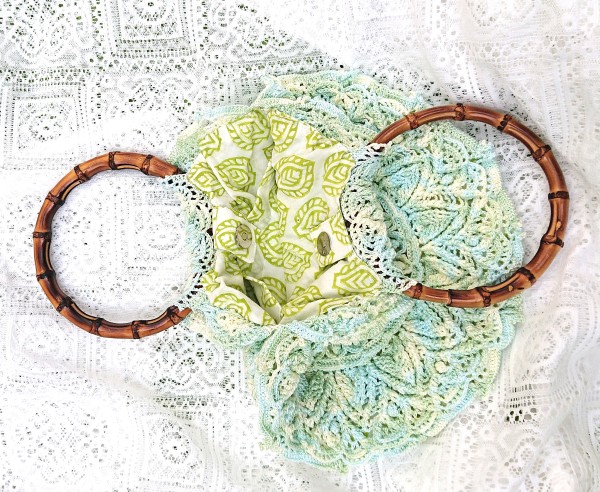 | 立体レースドイリー(毛糸だま2024年夏号)を利用したバッグを製作しました。 | |
