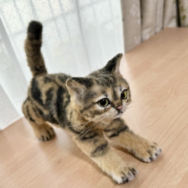 | リアリスティックトイ 「子猫(ブラウンタビー)」 ポージング可能な可動ぬいぐるみ(アートドール)で、リアルな動物を造形しています。 X、メルマガでの取り上げありがとうございました!記念にスタジオ撮影前ですがアップしました。 手乗りサイズ、全身可動、肉球ぷにぷにです。 7/15 写真追加 |