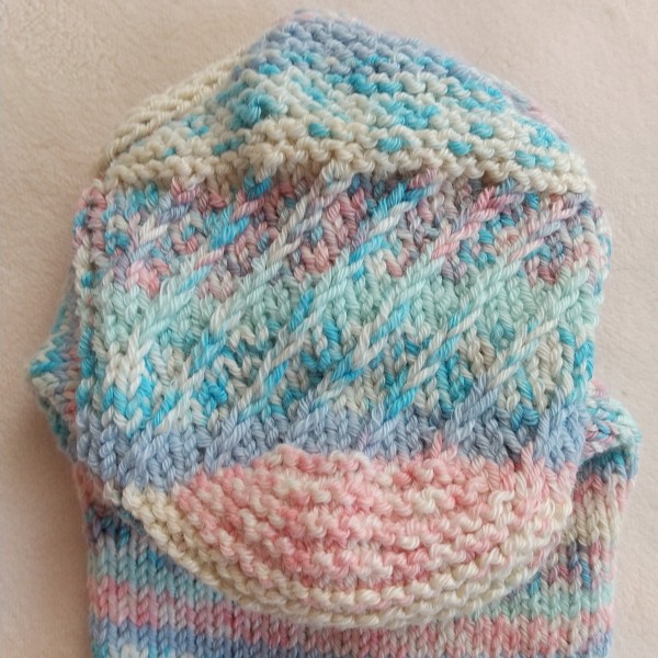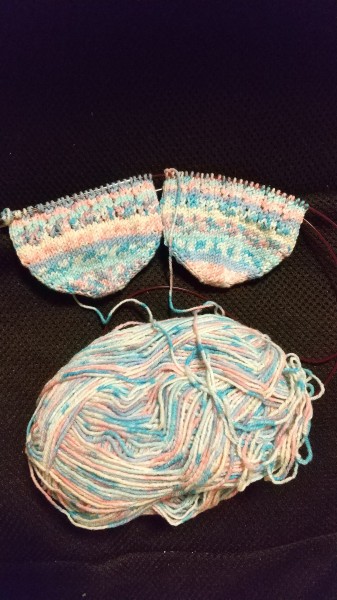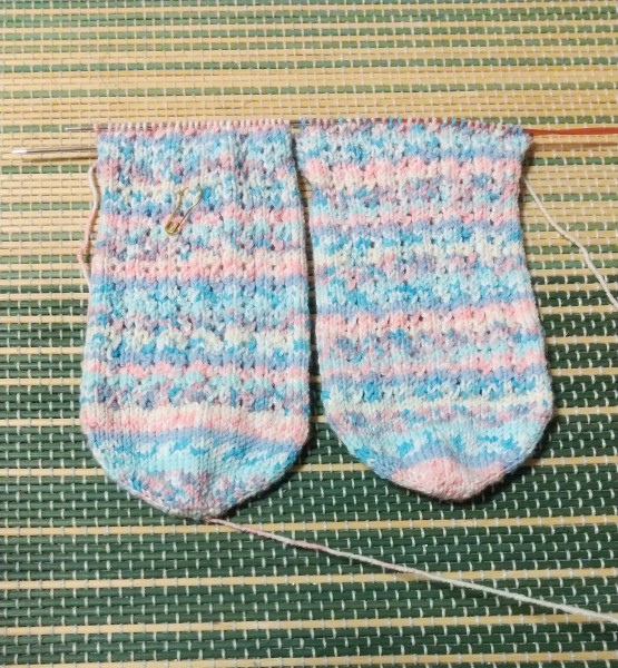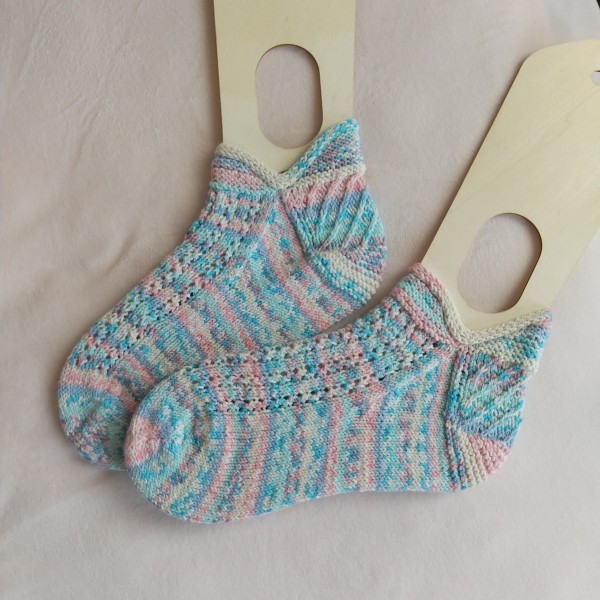 思ったより時間がかかったけれど、足の甲の透かし編みも、踵フラップの斜め模様も、我ながら良く出来た!大満足の仕上がり\(^^)/