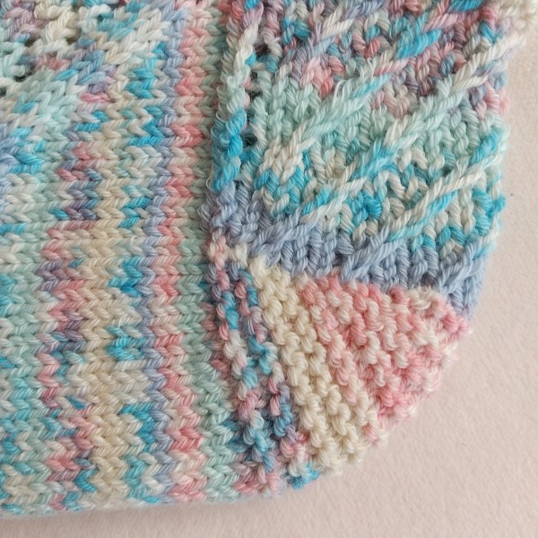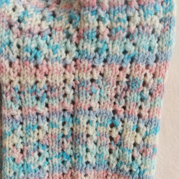 | REGIAのAround the World一番人気の糸で編むうつぼソックス 甲の部分に透かし模様を、踵フラップ部分に斜めの模様を入れてみた。 |