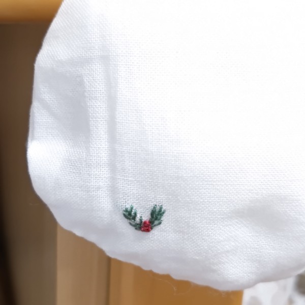 ふわふわの綿が入ったオーナメントです。裏にもワンポイントを入れました。糸は主にDMCです。