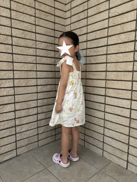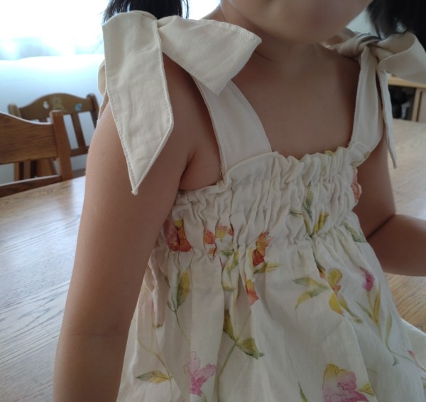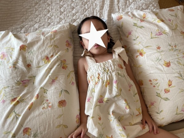 | あまり使っていない客用布団のシーツをリメイクして枕カバーを作った際に この柄なら子供用のワンピースにしても可愛いかな?!と、簡単なまっすぐ縫いのワンピースも作ってみました。 身頃部分は5本ゴムを通してシャーリング風に。 肩紐は無地の布で4本作り、リボン結びにできる感じにしました。 何の採寸も型紙もせずにザッと縫いましたが、サイズもピッタリ! 涼しくて気に入ってくれました。 最後の写真は同じ生地の枕カバー2個に挟まれて(笑) |