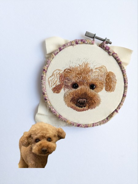 | てといとネームを(さやか)から屋号に変更しました。改めて宜しくお願い致します。 トイプードル刺繍オーダーブローチ 中サイズ 裏のブローチ処理は、以前てといと友達の 苺ichieさんにおすすめしてもらった透明糸を使ってブランケットステッチをしたので、糸が目立たず自然な仕上がりになった気がします! |