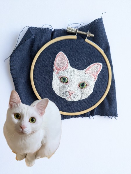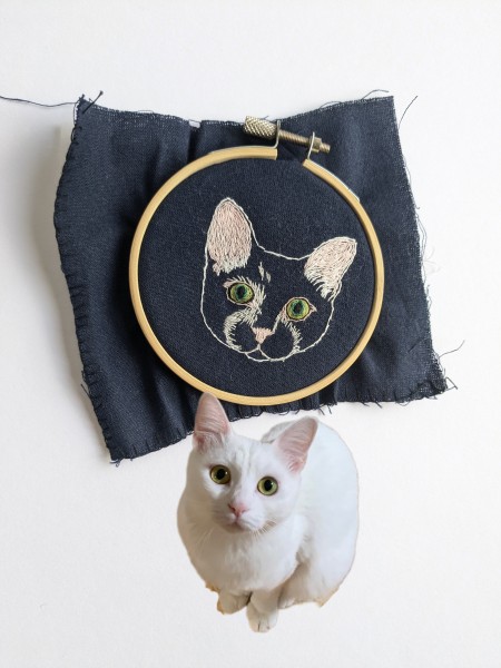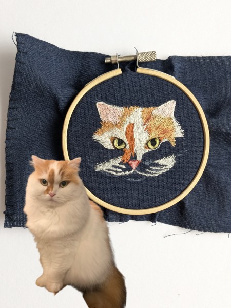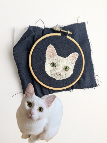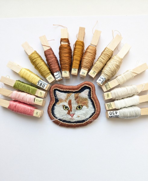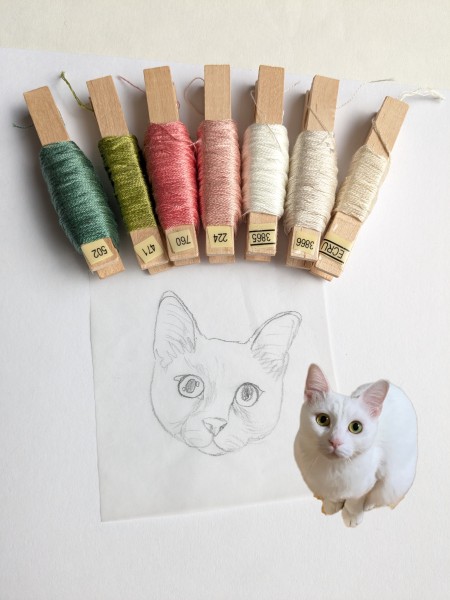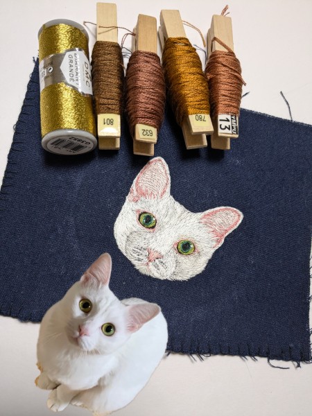色数が少ない白猫ちゃんなので、刺繍糸の色選びも難しいです