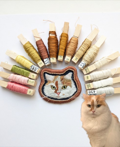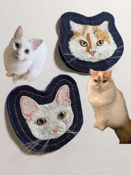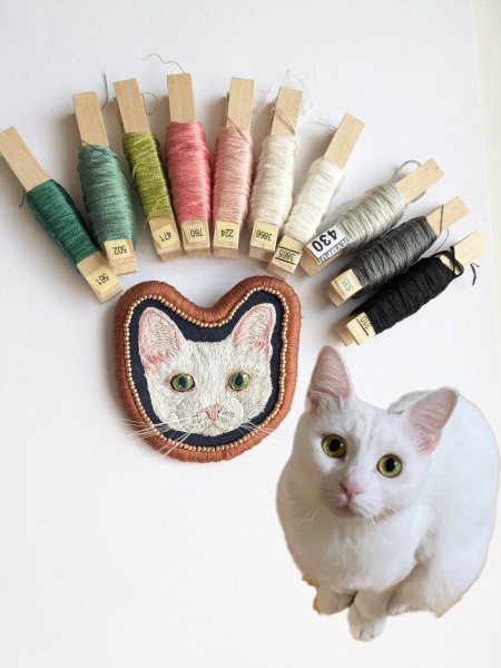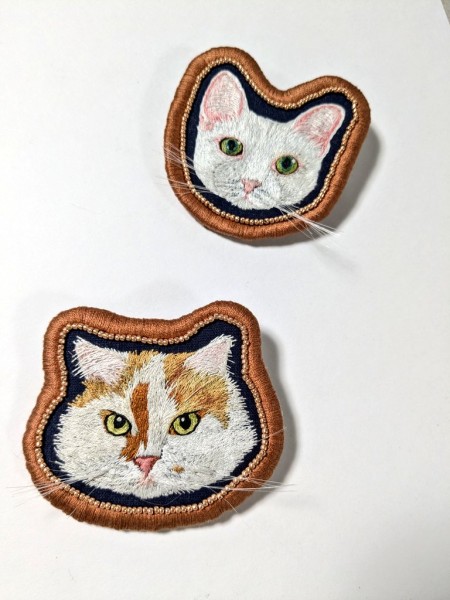 | オーダー15白猫うずらちゃんの刺繍ブローチと オーダー16スコティッシュフォールドのちくわちゃんの刺繍ブローチ |