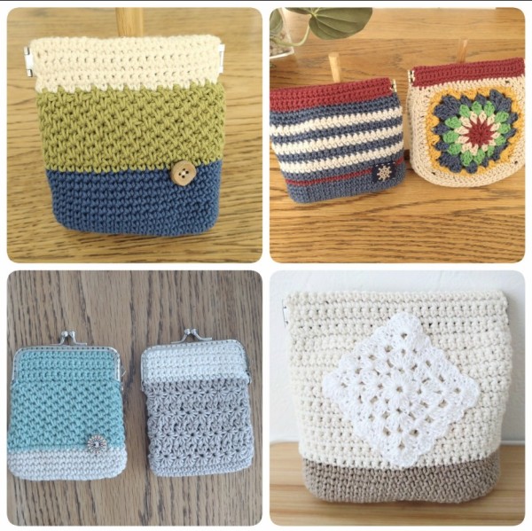 | 手持ちの糸と口金でバネポーチを編みました。 どちらもコットンのキナリの糸でモチーフの方はの茶色と合わせてまナチュラルな感じに、バスケット風の模様編みの方は黒と合わせてシックな感じにしました。 12センチの口金なので、バッグの中に入れる程度の化粧ポーチに使えそうです。 半端糸で編めるので、ぺたんこなカード入れタイプ等これまでもたくさん編んできました。 |