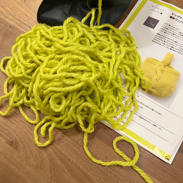 | ビッグケーブルのワンハンドルバッグ。クチュリエから発売されたROWANとしずく堂さんのコラボキットです。 | |