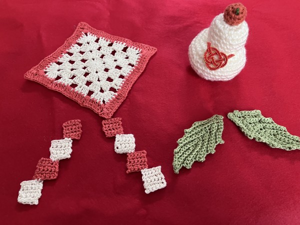 敷紙、御幣、裏白は18番レース糸で2号針で編みました