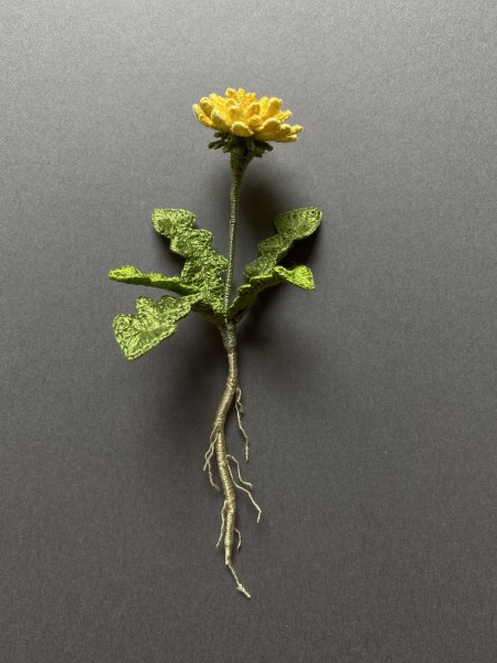 根っこつきのたんぽぽを立体刺繍で表現しました。