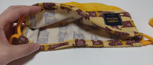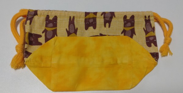 初めて作ったお弁当巾着です。裏地なしです。子供用サイズでそのまま作ったところ少し小さかったです。作り直すことがあったらサイズを変えて作ろうと思います。