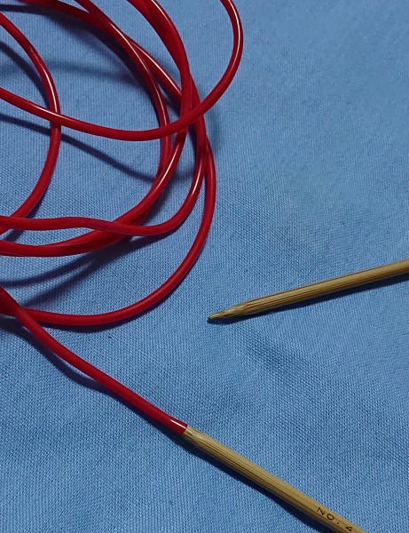 休み目は一旦棒針に取り直してからはぎました。今回は流行りのチューブコードを使用して休め目をしていたので、チューブを棒針の末端に押し込み、スムーズに棒針に移行出来ました。便利です!