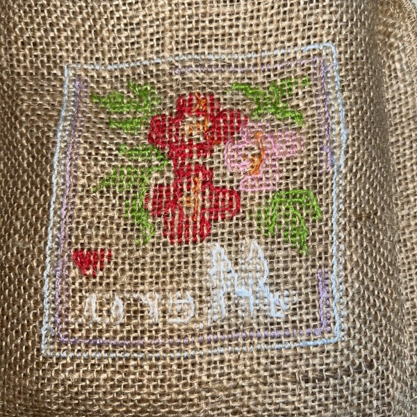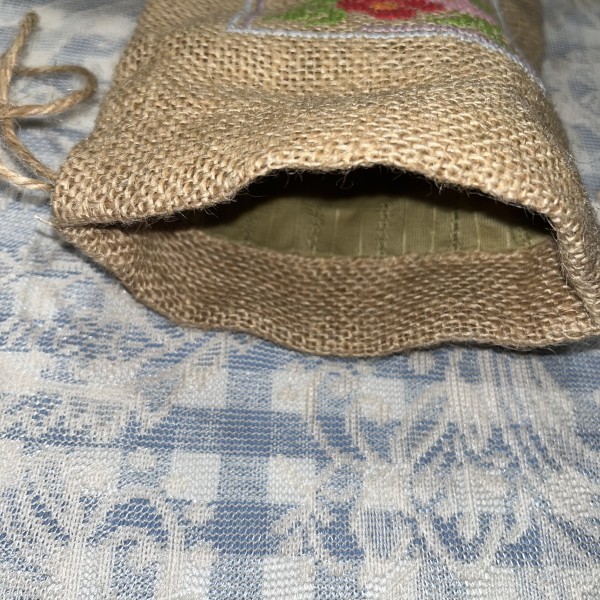 いつもは3本どりなので、2本どりで小さめの巾着に刺繍してみました。
