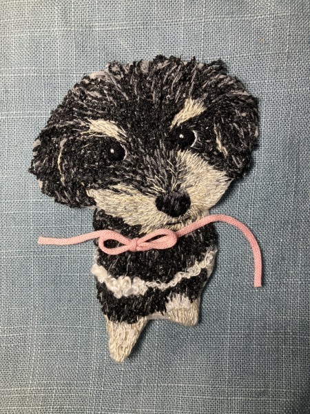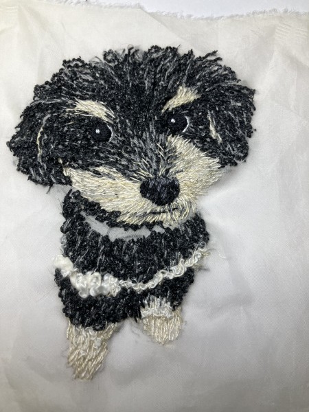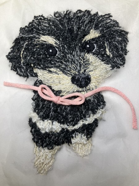 よりリアルにするためにオーガンジーの布を使って、写真をそのまま写しとって図案にしました