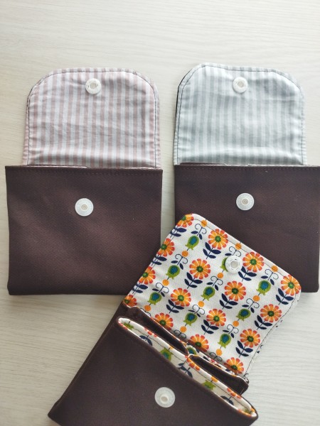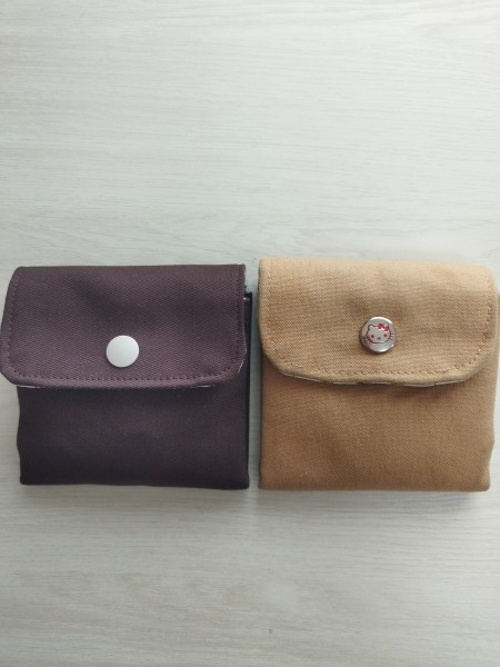 | 5.6年前に作ったお財布を新調する為作ってみました。キティちゃんのボタンのお財布が1代目です。結構使いやすくて自分のお小遣いを入れるようにずっと使っていました。同じ財布を息子と彼女に色違いで作りました。カーブが苦手で綺麗に縫えませんでした。全体的に歪んでいるような…。小物作り意外と難しい。 | |