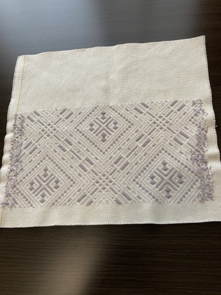 | こぎん刺しで普段使いのバッグを作っています。かなり時間はかかりそうです。 | |