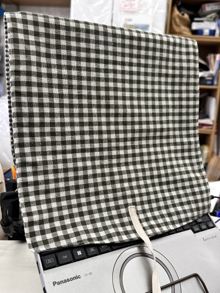使った後に袋に入れるのが面倒になり、使用中に人が来たら目隠しにできて、使い終わったら全体を包めるカバーを作ってみました。使用中もPCにくっついているので結構いいかも