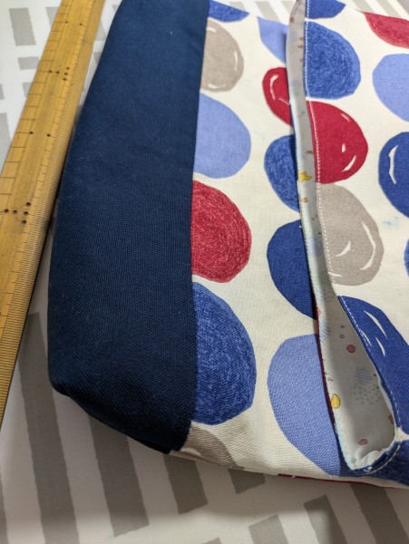 | 仕上がりサイズ | 縦(口側を折った状態)20cm × 横(底)27cm × まち2cm |