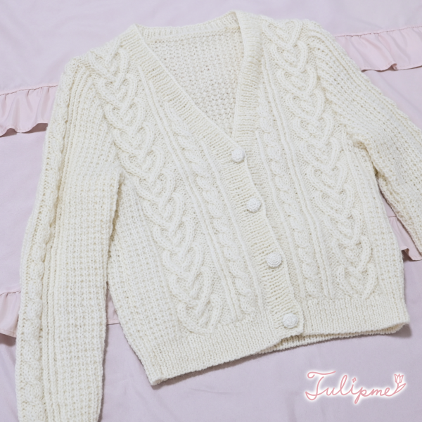 | 編み物で作るウエア2着目! 今回はカーディガンに挑戦します! 白い色で、ハート模様や縄編みを入れて、 可愛くできるといいな♪ ♡*。.後日談 & 反省点 . 。*♡ だいぶ編み物にも慣れ、 前作よりも半分の月日で完成した初カーディガン! 編み模様満載で終始楽しく、 ときに悩み…編み応えのある作品になりました。 反省はゲージ通りに編めなかったこと。 いざ編もうとすると力んできつく編んでしまうようです。 今後の課題はゲージ通りに編めるようになること! |