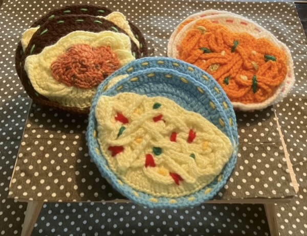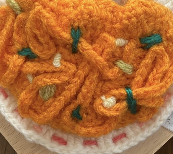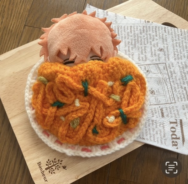 | ナポリタンのぬいぐるみさん用お布団です。 12,13cmのチビぬいさんサイズです。 鎖編みのパスタを玉ねぎ、ピーマン、チーズの具で縫い止めてあります。 直径約17.5cmの1人用 約21cmの2人用 の2サイズ お仲間のペペロンチーノ、ミートソースとの3種類 |