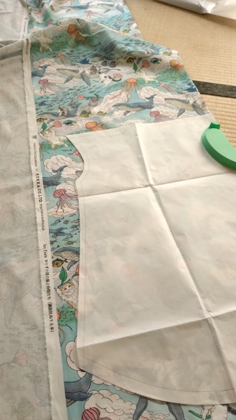 前身頃は、本当は柄合わせをしたかったけれど、どう頑張ってもできなかったので、見返しの部分をわざと濃い色にして柄を一旦切ってしまおうという作戦。吉と出るか凶と出るか。