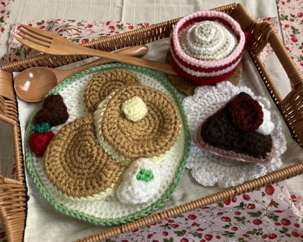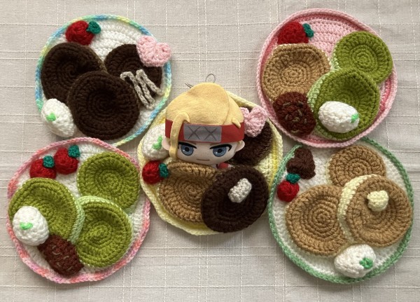 プレーンのパンケーキのほかに抹茶のパンケーキ、ココアのパンケーキ、2種のパンケーキを組み合わせたプレートなどなど計6種類作ってみました。