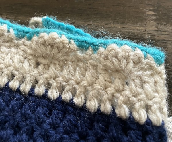 | 茶器カバー 本当はアイスティー用のハンディークーラーなのですが、ホットティー用に愛用しています。 持ち手の部分は筒にせず折り返して編みました。 色違いの鎖編み紐を2本編み付け、結べるようにしました。 |