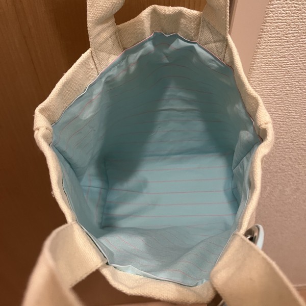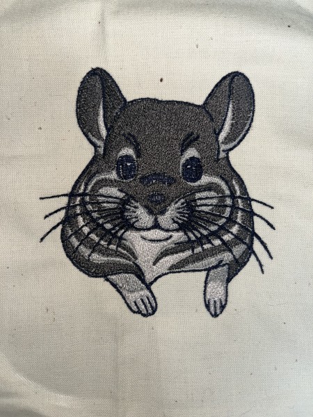 飼っていたペットのチンチラを写真からイラスト化して既製品のランチトートにミシンで刺繍してみました。裏面は糸だらけなので裏地も付けました。