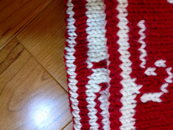 やり方がわからずに、何度も解いた日を懐かしく思い出します。最初は脇を閉じた状態で編むことも出来ず(目をスリップさせないと脇が離れてしまうので)、出来上がってから閉じたり、閉じ方ががわからず(いわゆる一目ゴム編みとは違う)、フリンジを付けて誤魔化したりもしました。