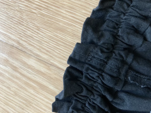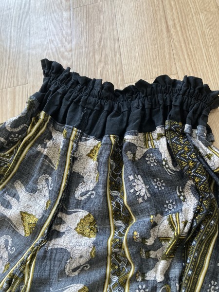 | 古くなったラップパンツを解体して、ウエストに黒い布を足してワイドパンツに作り替えました。 型紙はヌノコトファブリックさんのリラックスワイドパンツです。股下を5センチほど長くしました。 ウエストに布を継ぎ足すのが難しかったですが、折り伏せ縫いでやってみました。 ラップパンツの布を生かして履きやすい形にできたので良かったです。 |