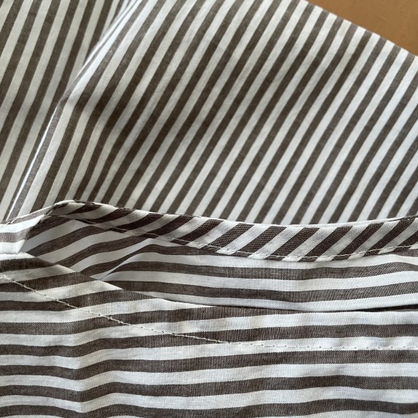 check&stripeの薄い綿生地で、白×グレーの細めストライプです。軽いので夏には最適。