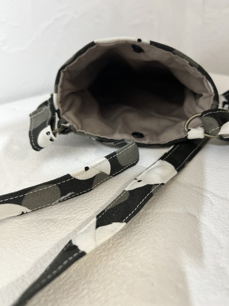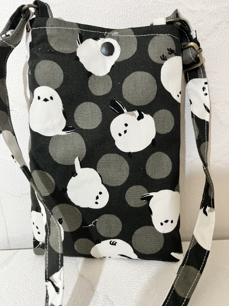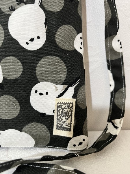 | 北海道の雪の妖精「シマエナガ」がデザインされた、モノトーン調のショルダーバッグです。 ころんと丸い姿のシマエナガたちが、大小のドット柄の上に散りばめられていて、大人可愛い雰囲気に仕上がっています。 表にはワンポイントとして切手風のタグが付いており、遊び心もプラス。 開閉はスナップボタン式で、中は無地の布張りになっています。 ショルダーストラップは長さ調整が可能で、斜めがけにも肩掛けにも対応。 |