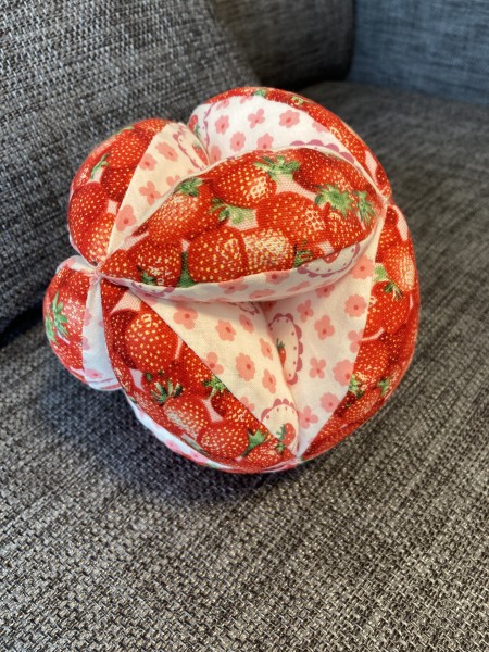 鈴が入っているので、紐をつけてぶら下げた状態で赤ちゃんの手や足が当たると音が鳴ります。