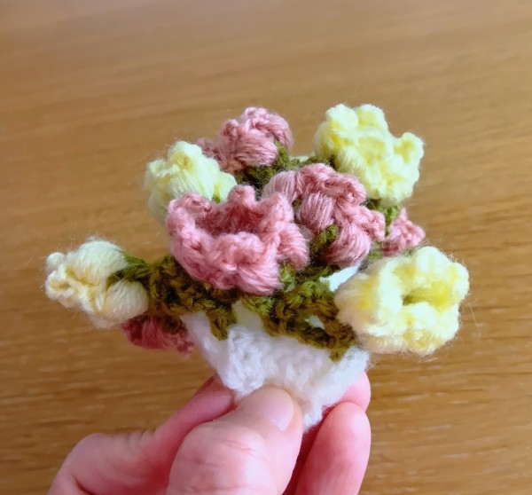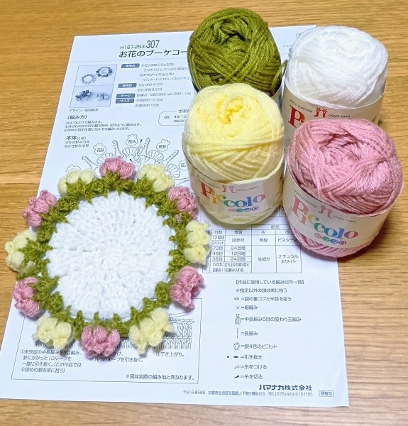 ハマナカさんのレシピより『お花のブーケコースター』です。