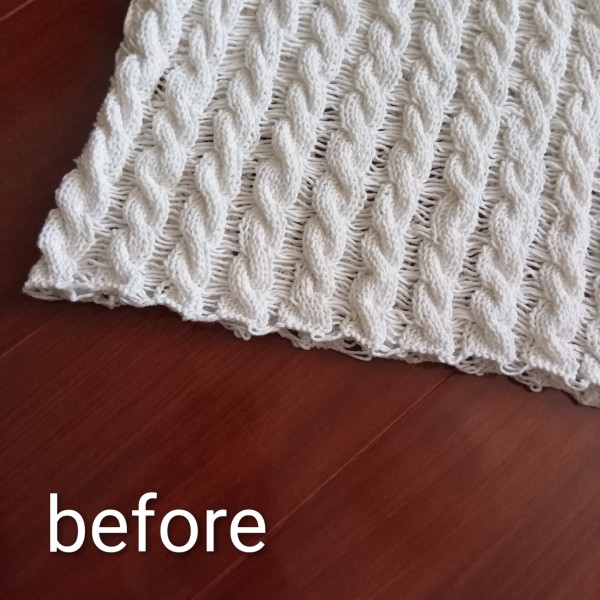 編み終えて目を落とす時、調子に乗って作り目までほどいていまって裾がダルダルに!