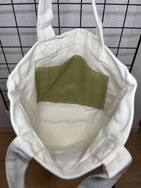 黒いトイプードルのお写真をお借りして、刺繍データの作成練習をさせて頂いたお礼に既製品のバッグに刺繍をお入れしました。裏は糸だらけなので裏地とポケットを付けました。