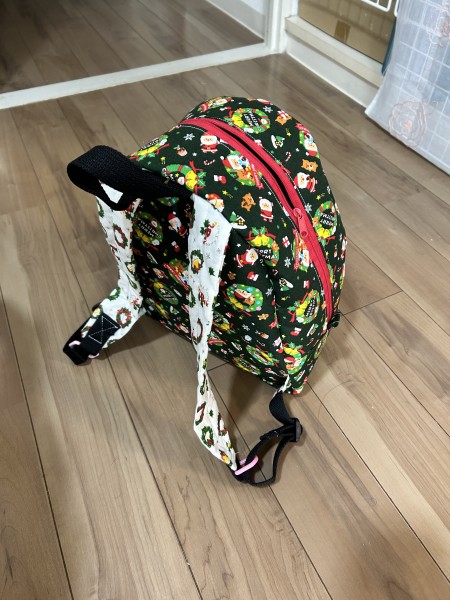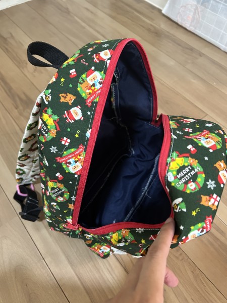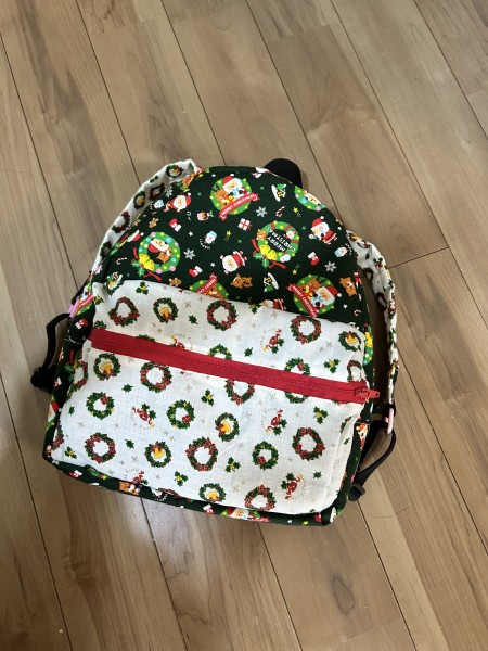 これから娘の登園リュックを作るのに、最初からミスなく作れないので、まず練習にクリスマス生地で作りました。