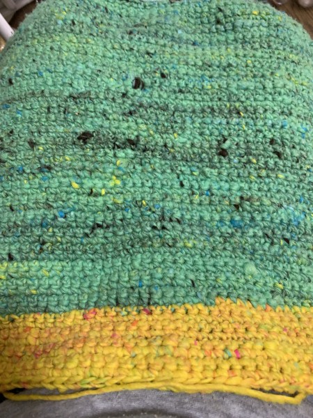 糸使用量 緑のミントが三玉、レモンが二玉