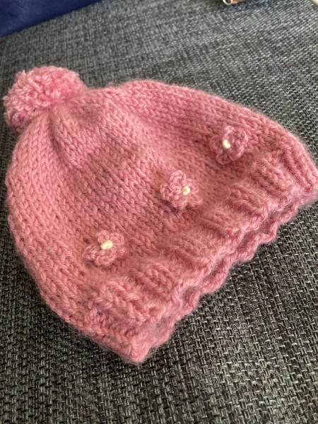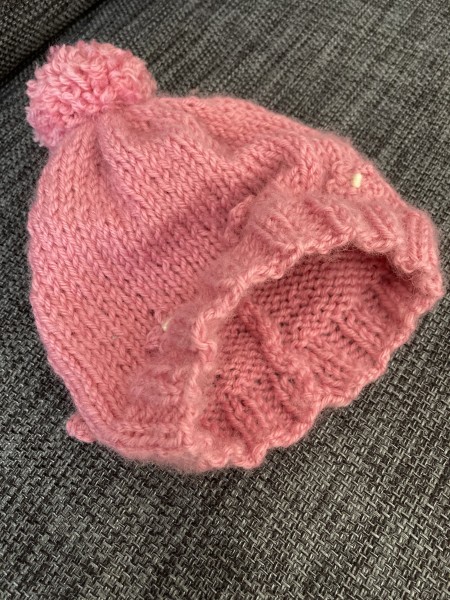 ベビーサイズになりましたので、これを基本に必要なサイズの帽子を編んでみたいと思います。