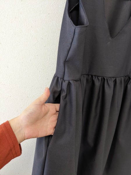 | Vネックワンピース。産後も着れるように授乳しやすいワンピースを作りたくて。下記のサイトを参考に、スカート部分はギャザー切り替えに改造してみました。ChatGPTにお願いして予め作ったイメージ写真は理想の形だったけど、実際の完成形とはちょっと違った… 反省点:もっと切り替え位置を上にして、スカート丈も長めが良かったな。そして今お腹が大きい状態で着てみるとパツパツで肩部分を脱ぐことができず、ほんとに授乳できるのかは怪しい…。 参考サイト: https://nukumore.jp/articles/1530?1530&page=1#outline4 https://yansewing.com/2023/09/pocket.html/ |