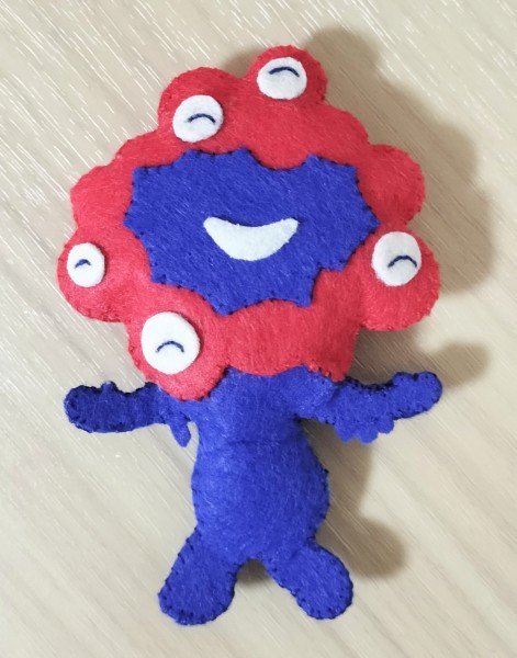 大阪万博キャラクター、ミャクミャクさまにハマった母に贈ろうと作りました。布フェルトと刺繍で作成!