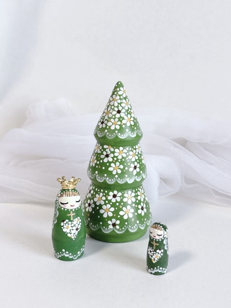 クリスマスツリーの中からマトリョーシカが2人でてきます