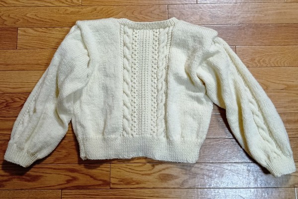 | アラン模様のカーディガンです。 毛糸ピエロさんの無料編み図を使用。 楽しく編めたけど思ったより模様が控えめだったので次はもっとアランアランしたやつ編みたいです(笑)。 編み図では袖口から斜めに増やしていく編み方でしたが私はゆったりした袖が好きなのでまっすぐ編みにしました。 |