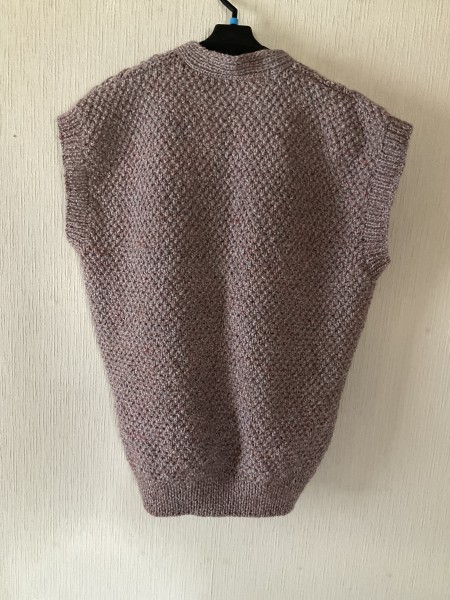 中細で編んだカーディガンとセーターを解いて三本どりで編んだ