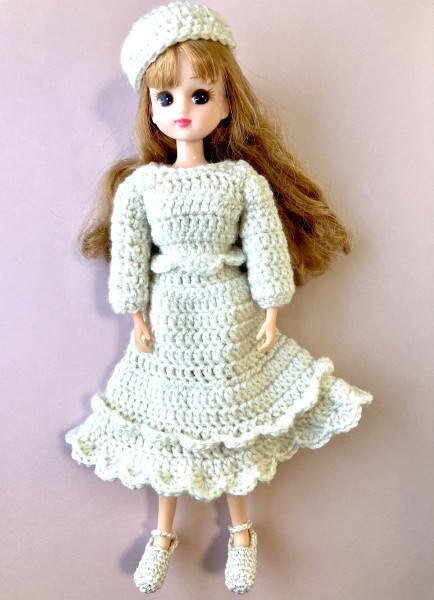 今回はラメの入った毛糸でリカちゃんのお洋服を編んでみました^ ^(わかりにくいけど、3枚目の写真参照