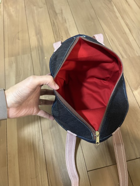 ユザワヤで紹介されていたころりんバッグ。ファスナーが普通とは違って縦方向に付いてて素敵。表生地には昔着ていた浴衣を使いました。